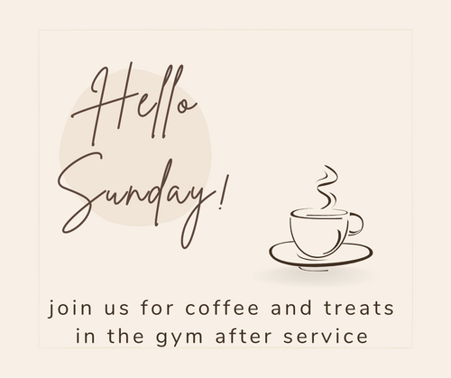 Join us for coffee and treats following the service each Sunday in the gym! A great time to get to know each other and for the kids to run around!